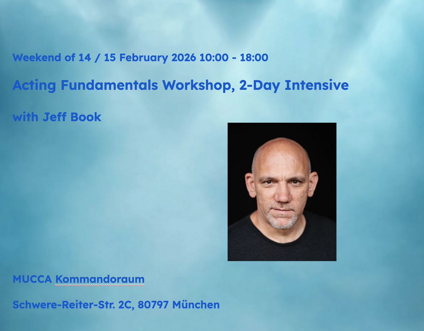 This workshop will also be held by Jeff Book, an American actor, working professionally in recent years in film, TV, commercials and modeling projects. Jeff completed stage and film actor training in London at various acting colleges and studios and has been acting part time for several decades, full-time since 2021 and is represented by Crawford Talents in Berlin.