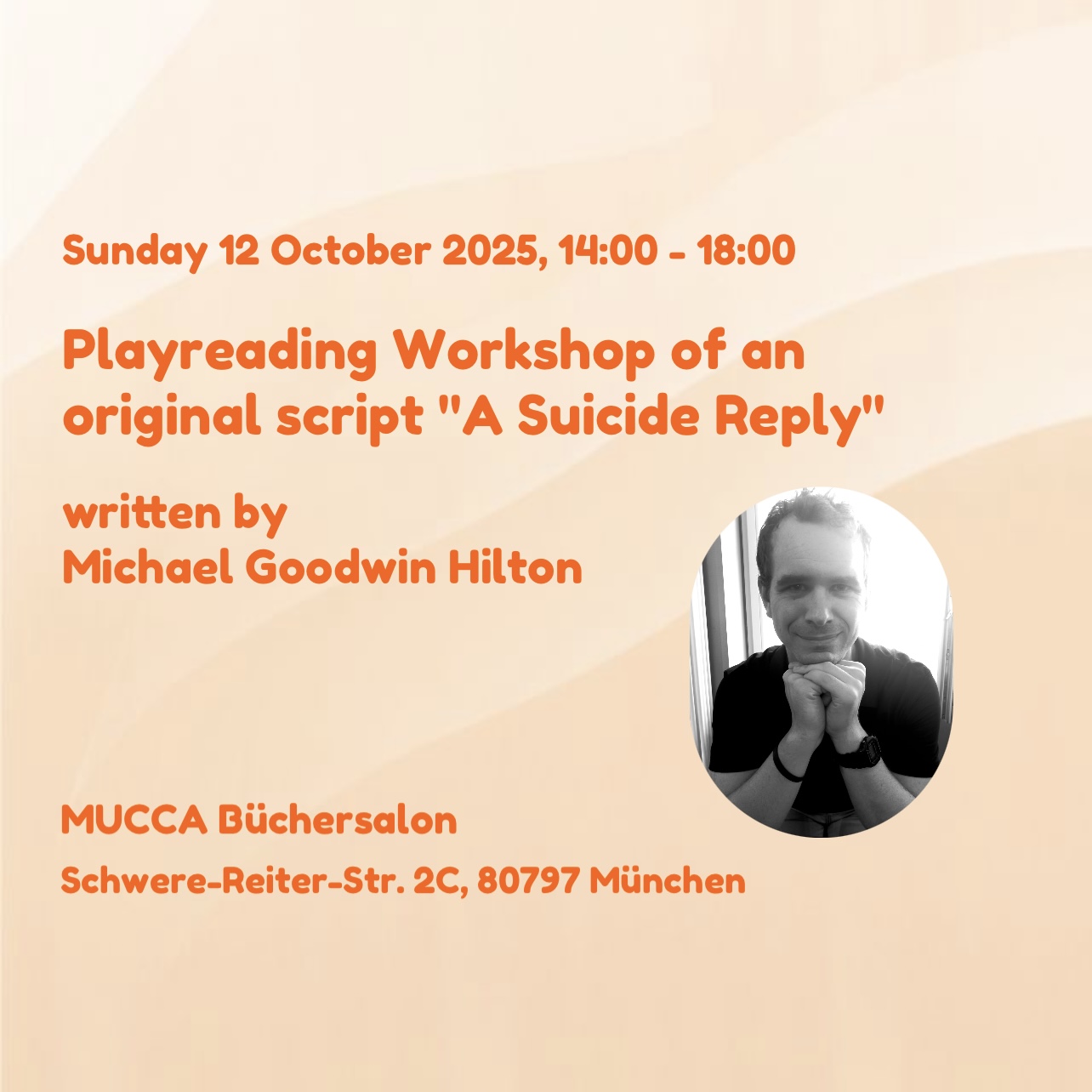 Our Playreading Workshop for A Suicide Reply at MUCCA Büchersaloon on October 12, 2025 was a full house — and a full success! Together with the author Michael Godwin Hilton, we read and explored the original script and engaged in a lively and inspiring discussion. Afterwards, we enjoyed warm conversations accompanied by drinks, snacks, and delicious cake.